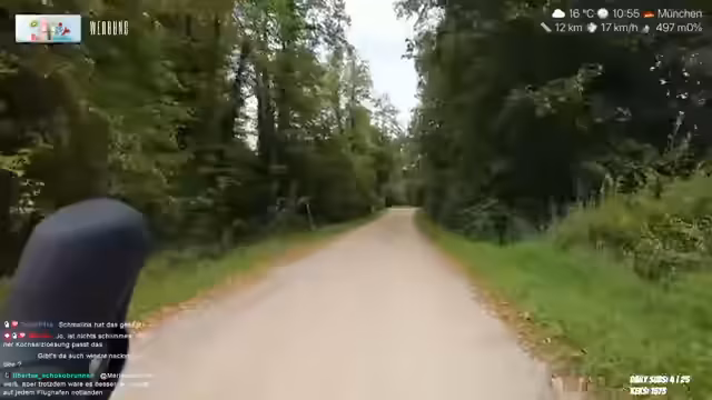 00:35:17Die Streamerin resettet ihren Standort, um die gefahrene Strecke aufzeichnen zu können. Sie erklärt die Funktion ihres Rennradrücklichts mit Radar, das sie frühzeitig vor herannahenden Autos warnt. Sie zeigt das Ziel ihrer Route, ein Restaurant an der Isar. Sie spricht über ein Rücklicht mit Kamera von Garmin, das die Entfernung der Autos anzeigt. Sie erklärt, dass sie heute kein weites Ziel hat, da sie länger nicht mehr gefahren ist und das Wetter schlecht ist. Sie gibt zu, mitten im Satz vergessen zu haben, was sie sagen wollte. Sie betont, dass Konzentrationsschwäche nichts mit Intelligenz zu tun hat und dass sie sich selbst als verpeilt, aber nicht als dumm bezeichnet. Sie packt ihre Kamera ein und erwähnt einen Popschutz für den Wind. Sie freut sich über das Fahrgefühl und erwähnt, dass sie ein Restaurant an der Isar ansteuert, sofern das Wetter es zulässt. Sie erzählt von Problemen mit dem Spiel Borderlands bei einem anderen Streamer und dass sie selbst den Key bekommen hat. Sie plant keine langen Streams am Abend. Sie freut sich über die Fahrt und erwähnt Einladungen zum Oktoberfest. Sie plant Streams vom Oktoberfest und Besuche mit anderen Streamern.