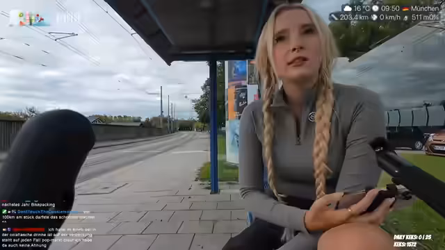 00:07:52Die Streamerin berichtet von einem seltsamen Vorfall, bei dem ein Mann sie aus dem Auto heraus ansprach und sie sich unwohl fühlte. Sie erklärt, dass sie Trockeneis in ihrer Kühlbox hat, um das Essen während der Tour frisch zu halten. Sie spricht über ihre Streaming-Routine und die Herausforderungen, täglich zu streamen. Es folgt ein humorvoller Moment, als sie versucht, ein Airdrop-Sandwich zu öffnen und feststellt, dass sie das Wort "Schere" zu oft benutzt. Sie bemerkt, dass ihr Ohrring fehlt und vermutet, dass er gestohlen wurde. Sie präsentiert ihr Fahrrad, ein rosa Gravelbike, und betont, wie schnell sie damit unterwegs ist. Sie erwähnt, dass sie bereits Bikerbräune bekommt und ihre Oberschenkelmuskeln trainiert sind. Sie spricht über ihre Vorliebe für Story-basierte Spiele wie The Witcher 3 und Stardew Valley und lobt die Dialoge und Kampfmechaniken in The Witcher 3, kritisiert aber die Art, wie Plötze reitet. Sie erzählt von ihrer vergeblichen Suche nach ihrer zweiten Kamera und entschuldigt sich für die Verspätung. Sie erwähnt, dass ihr Reisepass in Hongkong gestohlen wurde und nun im Fundbüro in München liegt, was sie als verrückt und zufällig bezeichnet. Sie vermutet, dass der Ausweis für illegale Zwecke genutzt wurde, da er erst nach einem halben Jahr wieder aufgetaucht ist.