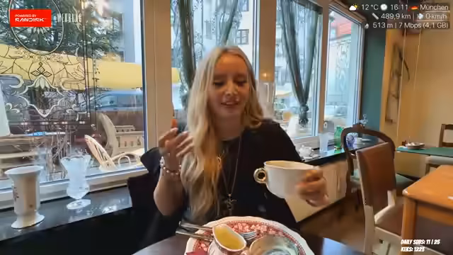 00:11:41Die Streamerin kündigt ihren Plan für den Tag an: eine Stadtführung in München mit ihren Zuschauern. Sie möchte mit ihnen einen Hop-On-Hop-Off-Bus nehmen und das 'Winkelgasse-Café' besuchen. Das Ziel ist, gemeinsam ungewöhnliche oder persönliche Orte für Dates zu finden, die sie sonst nicht alleine aufsuchen würde. Sie erwähnt ihre anstehende Reise zur Buchmesse nach Frankfurt und den Wunsch, dort Autogramme von Sebastian Fitzek zu bekommen, auch mit der Befürchtung, eine überfüllte Artist Alley vorzufinden.