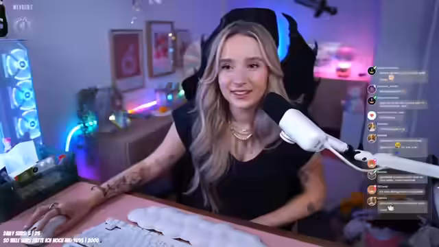 03:10:45Die Streamerin erzählt von ihrer langen Gaming-Vergangenheit, die bis in ihre Kindheit zurückreicht, beeinflusst durch ihre Mutter und ihren Opa. Sie spielte bereits in jungen Jahren Spiele wie Lara Croft und Jurassic Park auf der Playstation 1. Später wechselte sie zwischen Konsole und PC, spielte auf einem Nintendo Wii und dem PC ihres Opas. Ihr erster Shooter war MW2 im Jahr 2009 und sie spielte auch früh Minecraft. Sie erklärt, dass sie mit dem Streaming durch Phasmo angefangen hat, wo sie kleinere Streamer traf, die sie in ihre Streams einluden. Mit ihrem Gaming-Laptop, den sie für Pendelfahrten gekauft hatte, und einer PS4 Slim startete sie während der Corona-Zeit mit dem Streamen. Später kaufte sie sich ihren ersten Tower-PC. Sie erwähnt ein Ubu-Headset und spricht über ihre Vorliebe für In-Ears, um Headset-Frisuren zu vermeiden. Die Streamerin erklärt, dass sie das Rote-Kasse-Duo nutzt, um einfach zwischen In-Ears und Headset zu wechseln, da es integriertes Bluetooth hat. Sie hasst Kabel, weil sie unordentlich sind und ihr Kater sie gerne frisst.