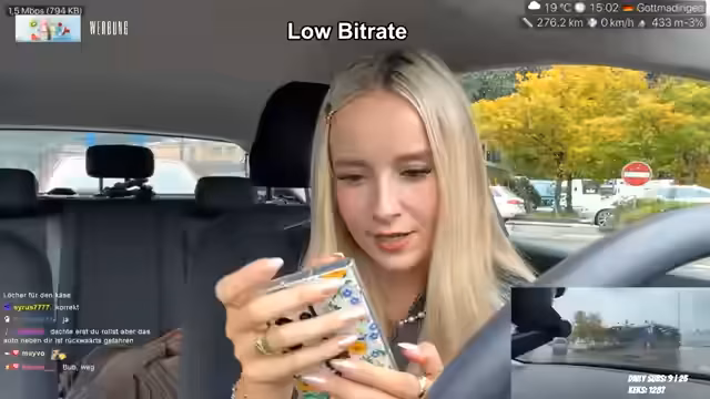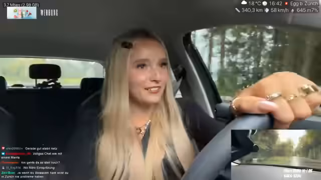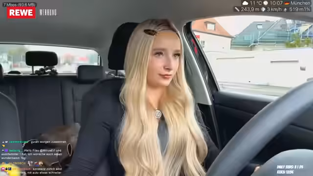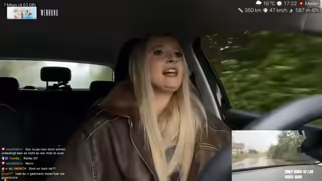 00:28:04Ein wesentlicher Teil des Streams beschäftigt sich mit den Herausforderungen des Straßenverkehrs. Sie wird von einem langsamen LKW aufgehalten, der auf der mittleren Spur fährt, und äußert ihre Frustration über rücksichtslose Fahrer, die sie gefährlich überholen. Sie zeigt auch ihr Interesse an den Verkehrsschildern und Kennzeichen, beispielsweise erkennt sie das Kürzel 'ER' für Erlangen. Ein technischer Meilenstein ist die erfolgreiche Einrichtung der Dual-Camera-Funktion mit ihrem neuen Handy, die es ihr ermöglicht, die Fahrt aus zwei Perspektiven zu streamen. Sie betont auch, dass sie trotz des IRL-Streams weiterhin eine leidenschaftliche Gamerin ist.
