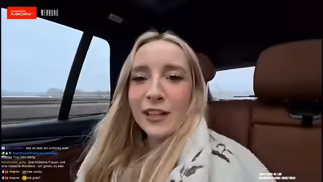 02:56:12Während der Autofahrt kommt es zu einer gefährlichen Situation: Ein Fahrer wechselt ohne Blinken direkt vor dem Fahrzeug der Streamerin auf ihre Spur, was einen Notbremsung erfordert. Die Streamerin beschreibt den Schockmoment und die parallele Beobachtung, dass der Unfallverursacher auf sein Mobiltelefon schaut. Sie thematisiert die Gefahr toter Winkel im Straßenverkehr und die Verantwortung des Fahrers. Nach dem Vorfall folgt eine allgemeine Diskussion über riskante Fahrweisen und die eigene Vorsicht im Straßenverkehr.
