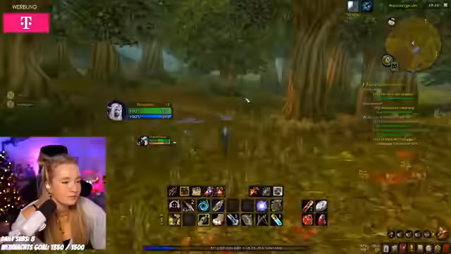 10:33:21Der Streamer tauscht und verwaltet Gegenstände wie Spinnenbeine und einen Stab, diskutiert deren Schadenswerte und reflektiert über die Lernkurve in WoW, insbesondere die Herausforderungen von 'Learning by Doing' ohne Guides. Nach technischen Problemen mit dem Mausrad wird die Steuerung optimiert, Quests wie der Waldweber werden bearbeitet, und es folgen strategische Überlegungen zum Schaden verteilen und Zugriff auf Ressourcen wie den Nachtsäbler. Die Gebietsbegrenzung wird thematisiert, als der Streamer stirbt, wenn er sein vertrautes Gebiet verlässt.