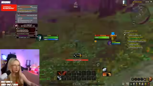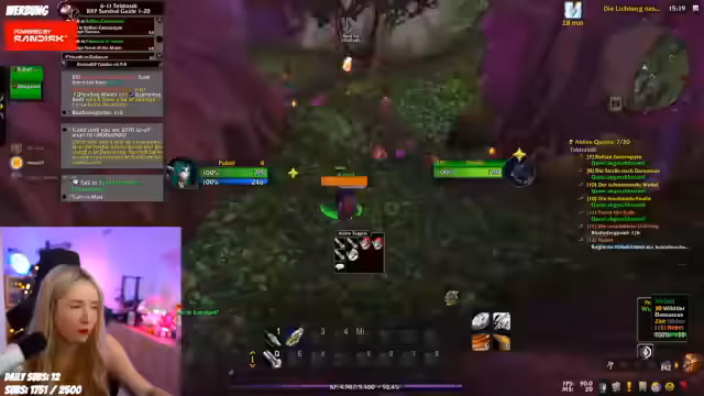 03:33:29Der Streamer spielt World of Warcraft und diskutiert Spielmechaniken, Klassen und Builds. Es kommt zu Todesfällen im Spiel, was Frustration verursacht. Auch technische Probleme wie das plötzliche Erscheinen des Character-Selection-Fensters werden angesprochen. Interaktionen mit anderen Spielern, wie die Gründung einer Gruppe, sind ein zentraler Punkt.