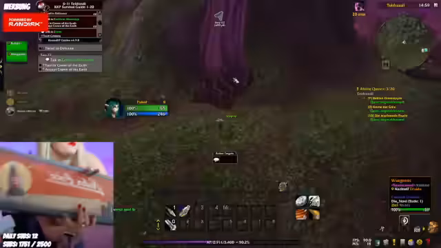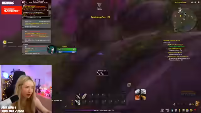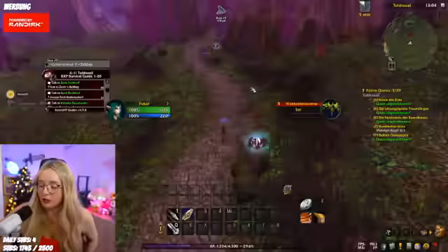 05:05:08Der Streamer berichtet von einem anstrengenden Raid in den Deadmines, bei dem er mehrfach angegriffen wurde und versuchte, einen Level-7-Gegner zu kite, während er selbst unter 2% Lebenspunkte fiel. Er reflektiert über den als besonders frustrierend empfundenen Tod, den er als einen der blödesten seit Zauberlase einstuft, da es fünf Spieltode gab. Während des Gameplay beschwert er sich über die Schwierigkeit, Gruppenquests auszulassen, und überlegt, ob er mit Level 9 weitermachen sollte, um Folgequests zu erhalten. Er erwähnt, dass er bereits mehrfach in diesem Run gestorben ist und sich fragt, ob er das Rested-XP-Add-on richtig konfiguriert hat, um ungewollte Gruppenquests zu vermeiden.