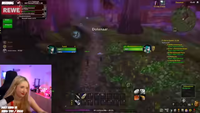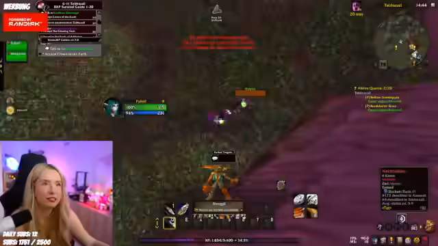 05:38:54Der Streamer kündigt an, einen weiteren Streamer der Woot Crew zu kontaktieren, um bei seiner aktuellen Quest in World of Warcraft zu helfen. Beide sind sich der Schwierigkeiten bewusst, insbesondere die Höhlenquests auf ihrem Level sind gefährlich. Der Streamer gibt zu, die Einstellungen für das Add-on Rested XP nicht vollständig zu verstehen, was zu Verwirrung über die Questpfade führt.