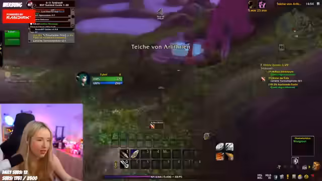 03:33:29In World of Warcraft spielt der Streamer Hardcore-Modus und stirbt auf Level 30, was ihn frustriert, aber nicht entmutigt. Er diskutiert die Mechaniken des Spiels, wie die Nutzung von Zaubersprüchen und die Bedeutung von Berufen wie Ingenieurwesen, um in schwierigen Situationen zu überleben. Es gibt Interaktionen mit der Gilde, inklusive eines Vorfalls, bei dem er einen Mitspieler aufgrund eines Missverständnisses ignoriert, der sich später entschuldigt. Er plant, weiter zu leveln und erwähnt, dass eine Gruppe von Spielern einen Raid vorbereitet, wobei der Zeitplan von überlebenden Charakteren abhängt.