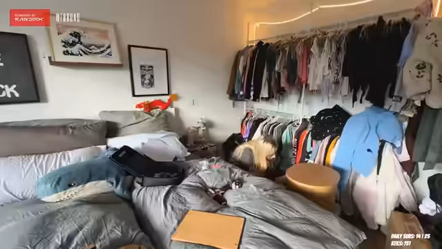 00:13:34Die Streamerin plant ein kleines Schlafzimmer-Makeover, da ihr Schlafzimmer der hässlichste und liebloseste Raum in ihrer Wohnung ist. Sie möchte es gemütlicher gestalten und erwähnt, dass dies gut zu ihrem aktuellen Sponsor Emma passt. Sie manifestiert ihre Partnerschaft mit Emma, da sie schon zuvor ein Kissen von Emma besaß und nun ein weiteres Paar hat, mit dem sie 10 Stunden geschlafen hat. Dies unterstreicht ihre Begeisterung für die Produkte und die Authentizität der Partnerschaft. Sie fährt zu 'Jusk', um Nachttische zu besorgen und bittet die Zuschauer, sie daran zu erinnern, Jonsi Handschuhe mitzunehmen, da er keine hat. Das neue Bett soll bis zum 6. Dezember geliefert werden, was das Schlafzimmer zu einem gemütlichen und schönen Ort machen soll, besonders wenn sie aus China zurückkehrt. Die Streamerin möchte das Schlafzimmer mit den Zuschauern gemütlicher und wärmer gestalten.