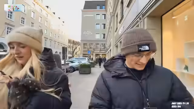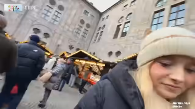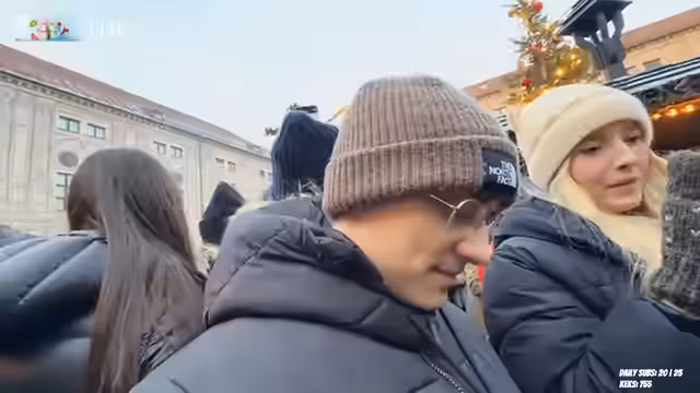 05:06:52Der Streamer präsentiert sein „Outfit of the Day“ (OOTD), das farblich aufeinander abgestimmt ist und ihn glücklich macht. Er ist warm angezogen und hat keine kalten Füße. Er erwähnt, dass er die Mütze, die er trägt, vor einigen Jahren auf einem Weihnachtsmarkt in Vietnam gekauft hat und sie sehr liebt. Gemeinsam mit Jonsi erkundet er den Weihnachtsmarkt an der Frauenkirche in München. Jonsi erhält Handschuhe, da seine Hände kalt sind. Der Plan ist, die besten Süßigkeiten und deftigen Speisen des Weihnachtsmarktes zu finden und zu bewerten. Es wird diskutiert, ob man den TikTok-Trend, eine Waffel in einen Crêpe zu legen, ausprobieren sollte. Sie entscheiden sich, zuerst einen Crêpe zu holen, müssen sich aber auf lange Warteschlangen einstellen. Der Streamer nutzt seine Nase, um das Handy zu bedienen, was zu lustigen Momenten führt.