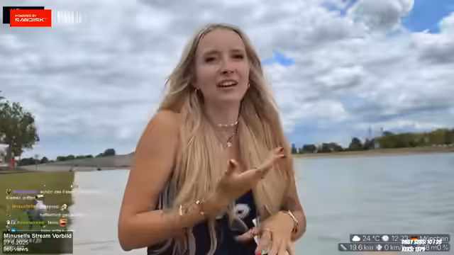 05:17:35Während sie sich auf den Weg zur Burg macht, teilt die Streamerin persönliche Geschichten. Sie erzählt von einer unangenehmen Anfrage bezüglich OnlyFans und wie sie reagiert hat. Sie bereitet sich auf den Aufstieg vor, zieht sich um, meidet, dass sich ihre Hose verrutscht, und bereitet ihr Equipement wie Powerbank und Stativ vor. Sie zeigt sich nervös, besonders wegen eines bevorstehenden Besuchs bei ihrer Oma.