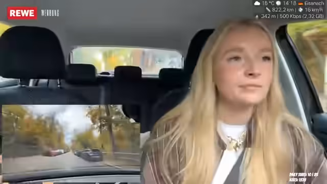 00:00:01Der Stream startet während der Fahrt in die Heimat, genauer gesagt zu einer Burg. Der Streamer berichtet von einem unangenehmen Vorfall auf der Straße, bei dem ein anderer Fahrer ihn absichtlich angefahren und weggedrängt hat. Dabei werden die Geräusche des Verkehrsgeschehens und die Nervosität der Situation deutlich wiedergegeben. Gleichzeitig erwähnt der Streamer, dass er mit einem präparierten Essen unterwegs ist, das durch Trockeneis gekühlt und mehrere Tage haltbar sein soll.