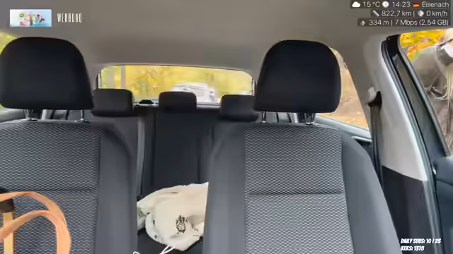 03:26:14Die Streamerin ist zermatscht von einer schlechten Nacht, in der sie mit einem Puls von 90 nach einem Albtraum aufgewacht ist. Sie atmete scheinbar wie Darth Vader und wurde von ihrem Freund geweckt, der sich Sorgen machte. Sie erwähnt, dass sie oft schlecht schläft. Sie ist nicht begeistert von der Idee, dass der TÜV jährlich statt alle zwei Jahre stattfinden könnte. Sie hört gerne überdrehte Musik, die sie in 'Menschen-Zoomis' versetzt. Sie plant, ihre Oma zu besuchen und dies mit einem Besuch der Wartburg zu verbinden. Ihre Mutter kann leider nicht dabei sein. Sie möchte zusammen mit ihrer Oma einen 16-seitigen ADHS-Fragebogen für ihre Verwandten ausfüllen, da sie sich an viele Details ihrer Kindheit nicht mehr erinnern kann. Sie erwähnt, dass viele junge Menschen aus Eisenach wegziehen. Sie möchte die Wartburg auch zu Weihnachten mit dem Stream besuchen, wegen des Weihnachtsmarktes und des Essens. Sie spielt aktuell kein Minecraft, aber sonst schon. Sie erwähnt den Sommergewinn in Eisenach und dass die Wartburg quasi im Rennsteig liegt. Sie hat sich den Daumen wehgetan und möchte keinen Dr. Peacock hören. Sie bemerkt eine günstige Tankstelle und ärgert sich über Spam im Chat. Sie freut sich auf den ADHS-Test, da sie unter ihrem Alltag leidet. Sie hasst mehrspurige Kreise und Albträume. Sie plant, ein OOTD (Outfit of the Day) auf der Wartburg zu machen und fragt, ob in Oberhof schon Schnee liegt.