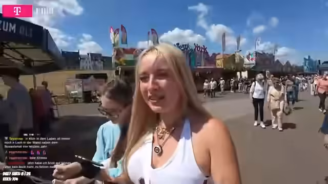 06:29:59Der Stream findet auf einer Kirmes in Düsseldorf statt. Die Streamerin ist bei verschiedenen Attraktionen und äußert ihre Freude und auch ihre Ängste, insbesondere bei Fahrgeschäften. Sie berichtet von ihrer Begleiterin Annika, die in der Schlange steht, und von einem technischen Problem mit einem Gerät, das wackelt. Sie erwähnt auch die allgemeine Stimmung und das Ambiente des Jahrmarkts, wobei sie sich über die Menge der Menschen und die laute Umgebungsgeräusche ärgert.