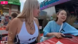 04:43:58Während des Spaziergangs durch die Kirmes gibt es viele Essensstände, die die Streamerin und ihre Begleiterin probieren. Besonders wird die Milchschnitte mit Schokolade gelobt, die für 3 Euro gekauft wird. Es kommt zu Diskussionen über verschiedene Speisen wie Schwenkbraten, Chili-Cheese-Pommes und Corndogs. Die Streamerin stellt fest, dass der Mageninhalt für das spätere Hauptessen geschont werden soll und besucht Schmuckstände, die sie sehr ansprechend findet.
