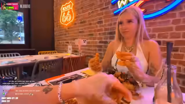 00:01:21Es gibt eine Diskussion über den Unterschied zwischen Kirmes und Rummel, wobei letzterer als ein Zelt mit Blasmusik und Alkoholkonsum definiert wird. Die Streamerin berichtet von einem ungesunden Ernährungszustand und begrüßt eine mögliche Partnerschaft, um wieder zu einer ausgewogenen Ernährung zu finden. Die technische Konfiguration für den gemeinsamen Stream mit Annika ist komplex und erfordert mehrere Versuche. Sie erwähnt den häufigen Wechsel von YouTube zu Twitch und ihre Abhängigkeit von TikTok, wobei sie negative Inhalte auf Instagram kritisiert.