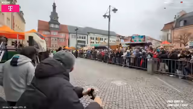 02:17:30Der Höhepunkt des Tages, der Frühlingsfest-Umzug, beginnt. Der Streamer versucht, die Aufmerksamkeit der Umzugsteilnehmer auf sich zu ziehen und grüßt sie direkt. Parallel dazu führt er durch die Innenstadt von Eisenach und zeigt markante Orte wie das Wahrzeichen, das Bachhaus und das Lutherhaus. Die Verbindung von traditionellen Festivitäten mit einer persönlichen Stadtrunde schafft eine einzigartige Live-Erfahrung für die Zuschauer.
