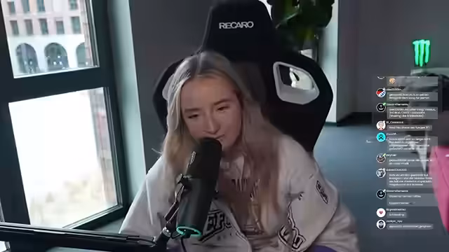 00:14:15Die Streamerin präsentiert ihre Leftlane Jacke, die sie bei einem früheren Drop im Stream bestellt hat. Sie teilt mit, dass sie sich bei SK Gaming befindet und das dortige Setup nutzt. Es wird kurz auf den Recaro Stuhl eingegangen. Die Streamerin scherzt über das Racing-Thema ihres Outfits und grüßt Thea. Sie erwähnt, dass sie sich auf einer LAN befindet und bedankt sich für die Unterstützung. Es wird kurz auf die Lautstärke des Mikrofons eingegangen und die Schwierigkeit, sich vom Mikrofon wegzubewegen. Die Streamerin erwähnt eine Kooperation von Sarah Tonin und SK Gaming. Sie bedankt sich für den Hype Train Stufe 3 und den täglichen Support. Es wird ein Bündnis und Dr. Cash vergeben.