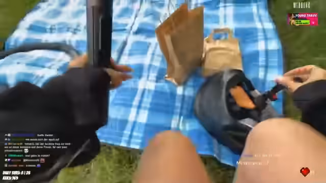 01:52:40Der Streamer beginnt den Stream damit, ein gemütliches Picknick im Englischen Garten zu veranstalten. Der Streamer zeigt verschiedene Antipasti wie gefüllte Weinblätter, Oliven, Peperoni mit Frischkäse und weiße Riesenbohnen. Das Wetter spielt dabei eine unvorhersehbare Rolle, da es mal zu regnen scheint, dann aber aufhört und die Sonne scheint. Der Streamer genießt trotz der Wetterkapriolen das Picknick und zeigt verschiedene Lebensmittel, die mitgebracht wurden.