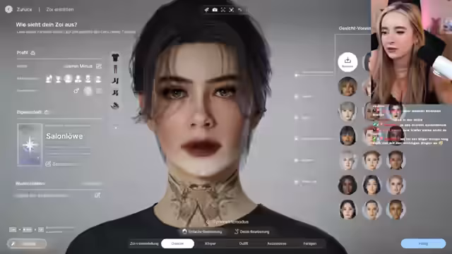 01:38:03Es wird der Wunsch nach einem erneuten Elden Ring Marathon geäußert. Persönliche Vorlieben und Abneigungen werden diskutiert, darunter die Entscheidung zwischen Freiheit und Selbstfindung, wobei die Selbstfindung als cooler empfunden wird, da man sich selbst ausprobieren kann. Es wird über die eigene Gesichtsform und kleine Lippen gesprochen. Die Möglichkeit, ein Bild von sich hochzuladen, um das Aussehen anzupassen, wird entdeckt und ausprobiert, was zu humorvollen Kommentaren führt. Es wird überlegt, wie man die Lippen schmaler machen kann und das Gesicht breiter. Die Sprecherin bedankt sich für einjähriges Jubiläum und Prime-Geschenke. Sie spricht über ein mögliches Doppelkinn und verschiedene Frisuren, wobei eine Frisur als passend empfunden wird. Die Haarfarbe wird als akkurat bezeichnet und die Liebe zu einem Pony betont, obwohl die Haare dafür zu fein sind.