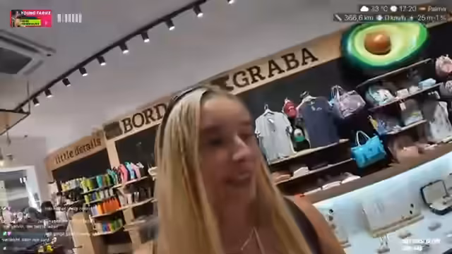 06:54:43Die Streamerin ist in einem Einkaufszentrum und betrachtet verschiedene Taschen. Sie zeigt besonderes Interesse an einer Tasche, die sie individualisieren lassen möchte. Nachdem sie ihren Namen und den User-Tag sticken lassen will, erkundigt sie sich nach den Kosten und der Dauer des Vorgangs, die mit circa 10 Minuten und 10 Euro beziffert wird. Die Tasche wird als cooles und persönliches Mitbegleiten angesehen, und die Streamerin betont, dass es sich um ein Unikat handeln wird.