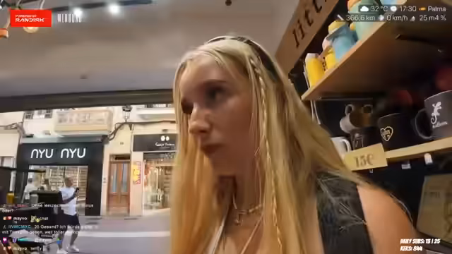 03:36:33Der Stream setzt sich in der Stadt Palma fort. Die Streamerin erkundet den Hafen und die beeindruckende Kathedrale, wobei sie das Gespräch auf die Vorlieben der Community für Schmuck lenkt, insbesondere wasserfesten und farbenfrohen Schmuck. Während der Erkundung treten immer wieder technische Probleme auf, die Bildqualität der Kamera leidet und der Akku neigt sich dem Ende. Die Streamerin stellt in einem Laden fest, dass sie fast nichts gekauft hat, im Gegensatz zu ihrer reiselustigen Begleiterin Annika.