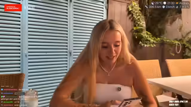 09:23:30Aufgrund der fehlenden Reservierung im angesagten Restaurant lässt sich die Streamerin vom Personal versprechen, Essen auf ihr Zimmer liefern zu lassen. Sie zieht sich für den Gang zum Restaurant um und begibt sich an einen Aussichtspunkt am Meer. Dort zeigt sie die beeindruckende Aussicht und ein Restaurant auf dem Wasser, das bereits sehr gut besucht ist. Sie genießt den Moment und die Aussicht auf das Wasser, während sie auf einen freien Tisch wartet.