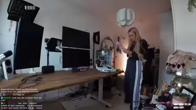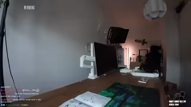 00:13:41Es werden zwei gefährliche Situationen im Straßenverkehr geschildert, bei denen Autos überholt haben, obwohl es nicht sicher war, und ein LKW auf der eigenen Spur entgegenkam. Diese Erlebnisse haben die Streamerin wachgerüttelt. Es wird angekündigt, ein komplettes Setup-Cleanup durchzuführen, inklusive der Verwendung von zwei hellen Mauspads, zwei Monitorarmen für drei Monitore und einem Set für Kabelmanagement. Die Monitore sollen übereinander gestapelt werden, mit einem zusätzlichen hochkant gestellten Monitor für den Chat. Das Mikrofon, das verloren gegangen ist, wird ebenfalls ersetzt. Die Streamerin freut sich darauf, das Setup richtig sauber und gemütlich zu gestalten, möglicherweise mit Kerzen, da das Wetter draußen regnerisch und ungemütlich ist. Es wird auch erwähnt, dass sie seit vier Jahren streamt und kontinuierlich Follower gewonnen hat, ohne einen plötzlichen Hype zu erleben, aber mit guten Zuschauerzahlen sehr zufrieden ist.