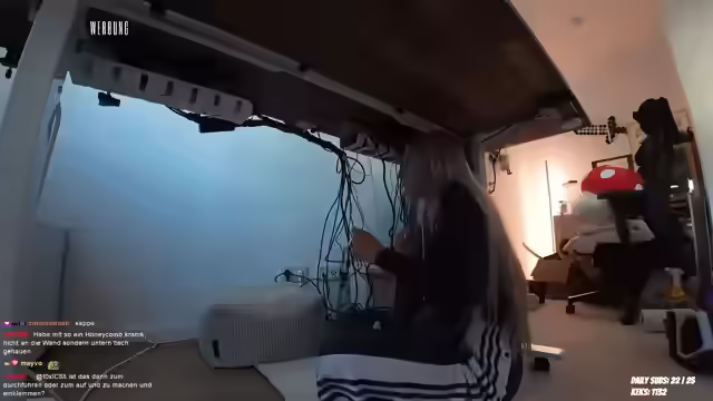 06:36:15Das Kabelmanagement erweist sich als unmotivierende Aufgabe, da der Streamer viele Kabel und große Netzteile hat. Es werden spezielle Kabelhalterungen benötigt, die angeschraubt werden können, um die Kabel ordentlich zu bündeln und am Schreibtisch entlangzuführen. Es wird ein Ziel für 2000 Subs angekündigt: Wenn dieses erreicht wird, soll ein Rad gedreht werden, um eine IRL-Reise mit Annika zu gewinnen, möglicherweise sogar nach New York. Die Streamerin ist mit der Monitoraufstellung sehr zufrieden, muss aber noch die Neigung einstellen und die Verkabelung abschließen. Ein Master-Slave-Steckdosenleiste wird verwendet, bei der sich alle Geräte automatisch einschalten, sobald der PC gestartet wird. Dies wird als sehr praktisch empfunden, um das Setup effizient zu nutzen. Es wird auch über die DJI-Mikrofone gesprochen, die als sehr gut und einfach mit dem PC zu verbinden empfunden werden, im Gegensatz zu Rode-Mikrofonen, mit denen der Streamer unzufrieden ist.
