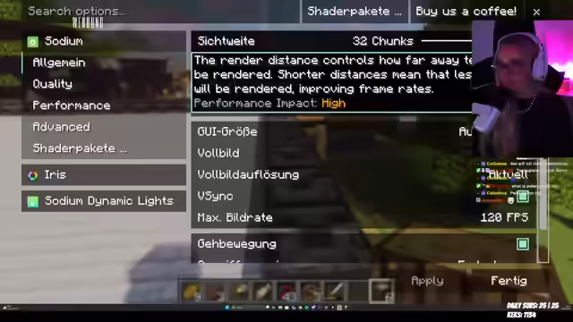 09:46:16Der Streamer beginnt eine Rundtour auf dem Minecraft-Server und lädt die Zuschauer ein, mitzuspielen. Die Sichtweite wird auf 32 Chunks eingestellt, um eine bessere Übersicht zu ermöglichen. Während der Tour müssen auch die Kameraeinstellungen für den Stream angepasst werden, da das Setup umgebaut wurde. Es wird eine Monitoraufnahme hinzugefügt und der Bildschirm entsprechend skaliert, um das volle Spielerlebnis zu gewährleisten. Während dieser Anpassungen werden auch die Audioeinstellungen für den Voice-Chat und die Musik optimiert, um eine angenehme Atmosphäre zu schaffen. Die Anpassungen der Grafikeinstellungen erweisen sich als etwas herausfordernd, da der neue Monitor eine höhere Auflösung hat als die alten, was ein Upgrade der anderen Monitore notwendig macht, um das volle Potenzial auszuschöpfen. Dies führt zu einer Diskussion über die Notwendigkeit, die Hardware zu verbessern, um eine optimale Streaming-Qualität zu erreichen.