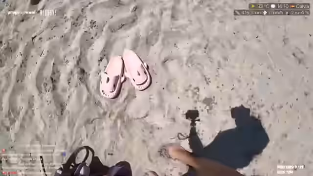 04:29:20Während der Zeit am Strand unterhält sich der Streamer über verschiedene Themen. Er äußert seine Angst vor kleinen Krabben, spricht von Elektrolyten und einem möglichen Badewannenvergleich, und kommentiert das warme Meerwasser von 28 Grad. Es kommt zu technischen Problemen, als er die Kamera wechseln muss und kurz darauf das Bild einfriert.