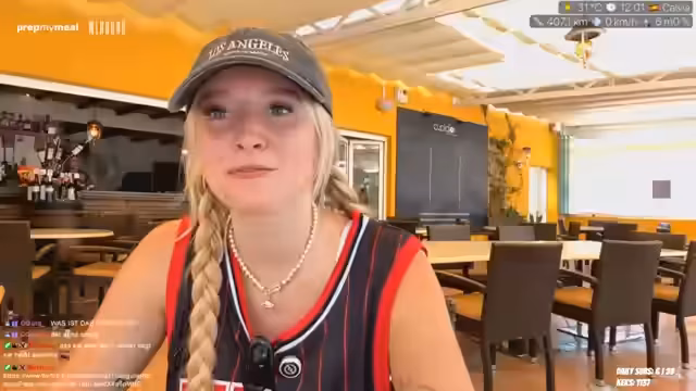 01:50:55Um das Parkproblem zu lösen, fährt die Streamerin zurück zum Hotel und bittet um Hilfe. Die Hotelmitarbeiterin spricht Deutsch und rät ihr, den Parkplatz nicht ohne Ticket zu nutzen. Nach der Ratschläge entschließt sie sich, in einem Restaurant Kaffee zu trinken und aufzuparken. Sie wechselt die Cams und unterhält sich mit dem Chat über persönliche Themen. So erzählt sie von ihrer Herkunft aus Thüringen, ihren Erfahrungen beim Studieren und ihrer Freude, jetzt in Bayern zu leben. Sie reflektiert auch über die Vorurteile und Kommentare, die sie im Internet erhält.