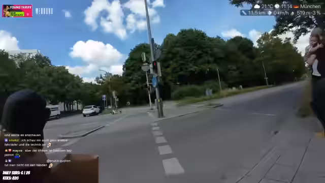 00:10:18Die Streamer beginnt mit einer Fahrradtour durch München und zeigt verschiedene Ansichten der Stadt. Sie berichtet über die Schwierigkeiten mit der Kamera-Positionierung auf dem Fahrrad und experimentiert mit verschiedenen Halterungen. Sie erwähnt auch ihre Vorliebe für Gravel-Bikes und die Unterschiede zwischen verschiedenen Fahrradtypen. Während der Tour gibt es technische Probleme mit der Verbindung zur Kamera und Internetverbindungen. Die Streamer auch über die Herausforderungen beim Radfahren in der Stadt und wie sie mit unangebrachtem Verhalten von anderen Verkehrsteilnehmern umgeht.
