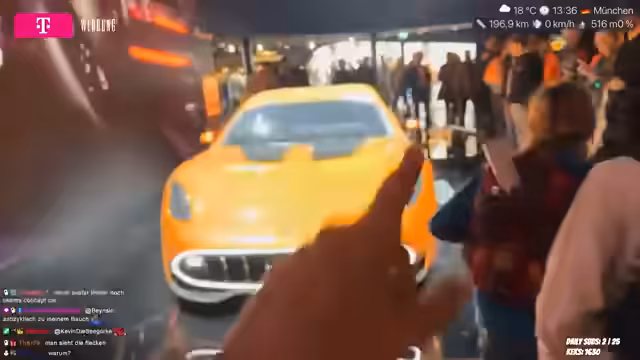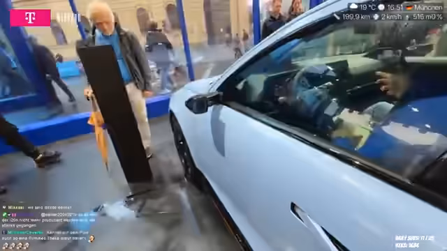 01:52:09Der Streamer ist live auf der Internationalen Automobil Ausstellung (IAA) und gibt an, dass der Tag für ihn und seine „Raider“ angefangen hat. Obwohl starkem Regen ausgesetzt ist, ist er voller Vorfreude und erkundet die Messe, die über verschiedene Standorte in der Stadt verteilt ist. Das Wetter hat seine Kleidung beeinflusst, er trägt einen Hoodie unter seiner Jacke, um gegen den Regen gewappnet zu sein.