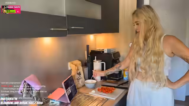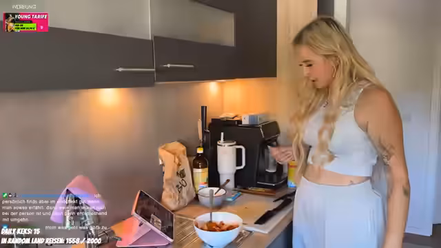 03:08:14Die Haarfarbe ist ein Thema, wobei die unterschiedlichen Farbtöne und Extensions besprochen werden. Es wird erwähnt, dass Pakete für die Nachbarn angenommen wurden, was zu einer kurzen Unterbrechung führte. Es gab eine kurze Besorgnis, ob der eigene Hinterkopf gut aussieht, da die Haare noch nicht trocken sind. Die Streamerin überlegt kurz, die Szene zum Setup zu wechseln, verwirft die Idee aber wieder. Es folgt die Enthüllung, dass die Streamerin einen Mitbewohner hat, was mit einem humorvollen Unterton präsentiert wird. Organisatorische Aufgaben wie das Reinigen der Pfanne und das Trocknen von Gegenständen werden erwähnt. Es wird die Vorfreude auf aufwendigere Kochaktionen ausgedrückt und ein Witz über den Konsum eines Big Mac gemacht. Die Streamerin äußert ihren Unmut über das Einkaufen und begrüßt neue Zuschauer.