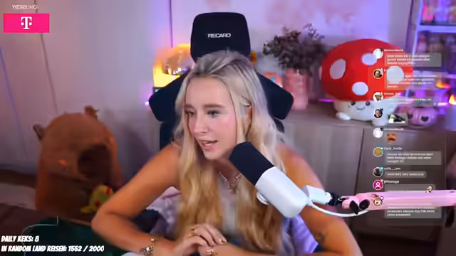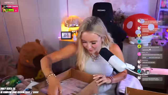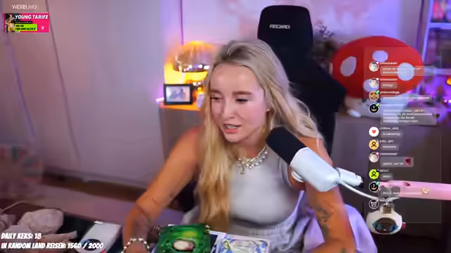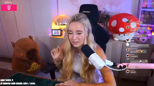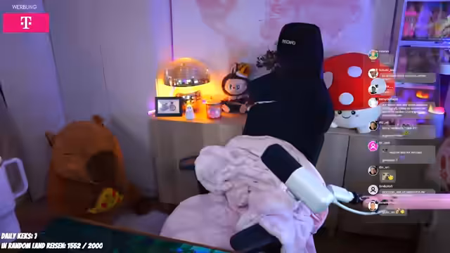 04:33:28Die Streamerin findet Knäckebrot, das gut für die Haare sein soll, und Sky-Socken aus Bangkok. Sie zeigt die Socken und einen Sky-Anhänger und ruft ihre Katze Kito. Sie findet die Socken geil und dass sie aus ihren Springerstiefeln rausschauen werden. Die Streamerin findet einen Sky-Anhänger. Die Streamerin findet einen Labubu. Sie hat einen Mitarbeiter gefragt, wie cool sie ist. Sie ist gespannt. Hier nimmt sie den Urlaub mit. Sie war im Urlaub und hat sich die Füße vorher machen lassen. Sie hat sich weißen Nagellack geholt und der ist gelb geworden im Sonnenlicht. Sie hatte also gelbe Fußnägel den ganzen Urlaub lang. Sie nimmt immer etwas mit. Sie hat von dem genau den, der nicht aussieht wie ein Labubu. Deswegen steht der auch nicht mit dem Kasten. Sie rettet ihr den Arsch. Sie zeigt, wen sie nicht davon hat. Sie hofft, dass sie jetzt einen bekommt, der aussieht wie ein Labubu. Sie fragt den Chat, welchen sie möchte. Sie hätte gerne die Venus Flytrap oder Cherry Blossom. Sie findet den geil. Sie hat den von Thea bekommen. Aus Amsterdam. Und ist der einzige, der nicht aussieht wie ein Labubu. Sie findet den ultra geil, weil sie mag ja eh so Horror-Themed-Sachen. Aber sie wollte noch einen für ihre Sammlung da hinten, der aussieht wie ein Labubu. Sie fragt, welchen Jellycat sie sich bestellt hat. Sie hat sich schon spoilern lassen, was es ist. Sie glaubt, die sind original. Sie hat sich schon spoilern lassen, weil das andere daneben transparent ist. Sie sagt nein. Sie sagt, guckt mal, wie doll er das liebkost. Sie sagt, Kito, entspann dich doch mal. Sie sagt, der liebt Plastik. Der frisst gerne Plastik. Sie sagt, das ist der, ähm, den kann ich nicht aussprechen, aber der ist ultrasüß. Kito liebt Plastik so. Sie sagt, guckt euch das an. Sie sagt, Scheiß Pikas-Syndrom. Jetzt will die Katze raus. Sie hält ihr Geburtstagsgeschenk, Mikoto. Sie mag Labubus, bevor sie in den Trend gekommen sind. Sie labert Chat schon damals voll mit Labubus. Sie wusste nicht, dass die hier auch Trend werden. Sie ist Chat-Streamerin. Sie kriegt keine Labubus mehr hier. Sie war schon vor dem Trend da. Sie ruft Annika an.