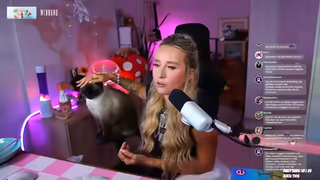 00:04:24Die Themen wechseln zu persönlichen Gesundheitsfragen. Der Streamer berichtet, sich nach einer langen Zeit nicht gewogen zu haben und ist schockiert über ihr Gewicht. Sie spricht über Verdauungsprobleme und nimmt den Rückgang um drei Kilo positiv auf. Später stellt sie ihr neues, teures, rosa Gravel-Bike vor und beschreibt, wie schnell sie damit ist. Auch Katzen spielen eine Rolle, besonders Kito, der als Idiot beschrieben wird. Den Abschluss bildet die unglückliche Suche nach der echten Yassi, wobei mehrfach ein Bild einer Ampel hinter einem Baugerüst als vermeintliche Yassi identifiziert wird.