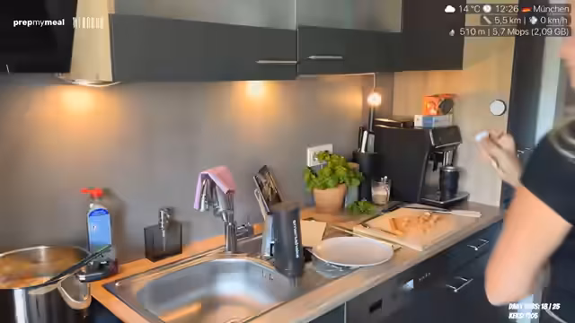02:18:14Die Kartoffelsuppe ist fast fertig. Gemüse, Kartoffeln, Zwiebeln und Wasser kommen in den Topf. Der Streamer gibt zu, dass die Suppe nach einer Weile püriert werden muss, während sie den Prozess schildert. Sie wechselt kurz die Unterhaltung, spricht von ihrer Katze, die schläft und einen abgefahrenen Blick hat. Bevor die Suppe fertig ist, macht sie sich einen Cappuccino mit einer Maschine, die verschiedene Kaffeespezialitäten zubereiten kann. Der Fokus liegt auf dem Abschluss der Mahlzeit und einer kleinen persönlichen Pause während des Kochens.