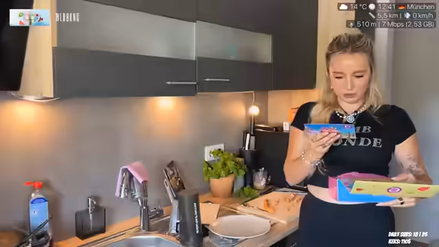 00:15:08Die Ankündigung des Hauptprogramms steht an: der Kochstream. Der Streamer will endlich ein Sandwich für den Chat zubereiten und äußert Aufregung über das Setup. Sie plant, am nächsten Abend nach Hamburg zu fahren und ist auf einer Messe, von der sie von YouTube eingeladen wurde, was sie als besondere Ehre bezeichnet. Ihr Schlafverhalten ist aktuell unruhig, was ihren Alltag beeinflusst. Sie erwähnt auch einen geheimen Termin, den ihre Managerin für sie ausgemacht hat, und zeigt Interesse an der Frankfurter Buchmesse. Kochen und Rezepte werden ins Zentrum gerückt, besonders Kartoffelsuppe.