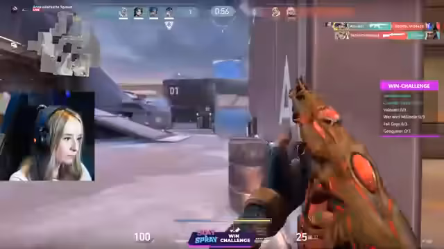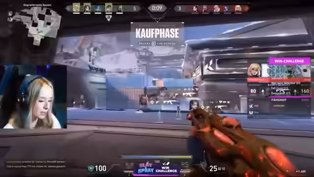 01:20:31Nach anfänglichen Schwierigkeiten gelingt es dem Team, einen Sieg in der ersten Map zu erringen. Die Stimmung hebt sich merklich, und die Spielerinnen loben sich gegenseitig für gute Calls und Teamleistung. Es folgt eine kurze Pause, in der die Streamerin die Bedingungen für die weiteren Spiele der Win-Challenge offenlegt. Dabei müssen innerhalb von 12 Stunden insgesamt drei Wins in verschiedenen Spielen geholt werden, ansonsten droht die Bestrafung durch Augenbrauenbleichen.