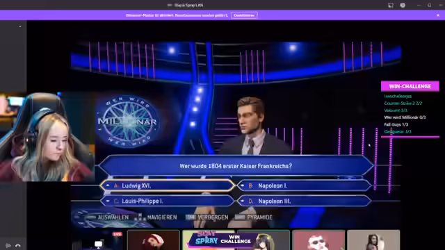 00:00:00Der Stream beginnt mit der Ankündigung der Win-Challenge, bei der der Streamer und vier Teilnehmerinnen in fünf verschiedenen Spielen jeweils mindestens drei Siege erringen müssen. Eine wichtige Bestrafung steht bereits fest: Bei Nicht-Erfüllung werden die Augenbrauen gefärbt. Der Streamer äußert Bedenken, da er nicht mit seinem eigenen Setup spielen kann. Im Gegensatz dazu äußert Annika ihre Freude über die anstehende Bestrafung, was ihre Ambition unterstreicht. Stream-technische Probleme wie Tonqualitätsmängel und das Fehlen von Alerts für Follows und Spenden werden als belastend empfunden. Trotz der Widrigigkeiten wird der Wille, die Challenge durchzuziehen, deutlich bekräftigt.