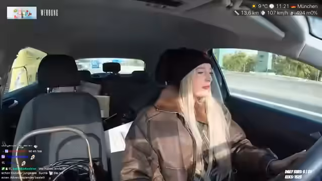 01:57:04Der Streamer spielt den Song 'Feel Nothing' von The Plot in You und lobt ihn stark. Er erwähnt, dass er aktuell wieder in Metalcore 'reingefunden' habe. Beim Fahren aus München heraus hält er sich strikt an die Geschwindigkeitsbegrenzung und erklärt, dass er nicht besonders schnell fährt. Es gibt eine kleine Diskussion über attraktive Männer in Schottenröcken.