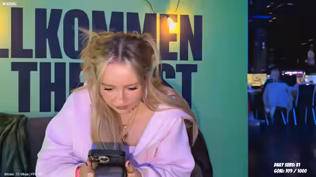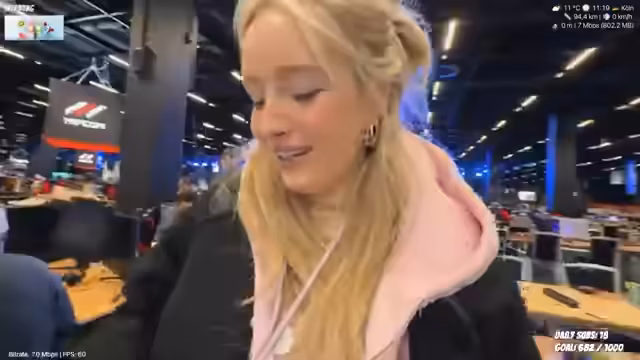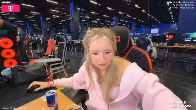 07:07:12Die Streamerin gibt einen ersten Überblick über die aktuelle Situation auf der Gamescom-LAN. Sie befindet sich im sogenannten 'The Nest', einem gemütlichen Bereich mit einer Couch und einem eigenen Buffet. Das Setup wird positiv bewertet und es besteht die Möglichkeit, die Technik mit einem Techniker abzustimmen und zwischen verschiedenen Setups zu wechseln. Die Atmosphäre wird als sehr chillig und cozy beschrieben, auch wenn anfangs noch alle im Aufbau sind.