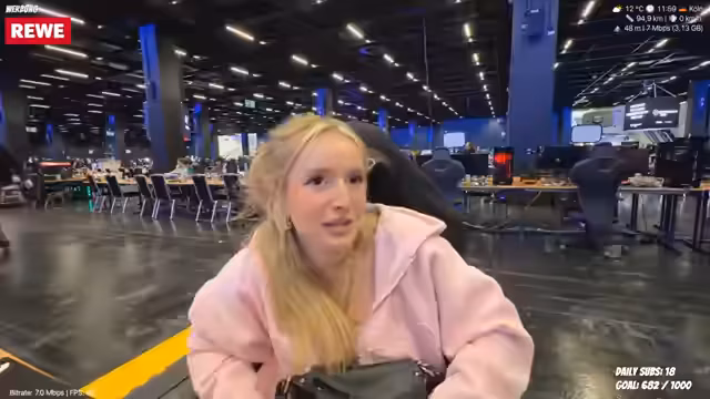 00:17:49Die Streamerin berichtet von ihrer Reise zur Gamescom und vom Aufbau des eigenen Stream-Setups. Sie schildert die Begeisterung über die Messe und die vielen Besucher. Es wird über Essen und Getränke gesprochen, wobei sie erwähnt, dass sie nach Knoblauch riecht, weil sie die Portionen ihrer Begleiterin gegessen hat. Sie zeigt sich gespannt darauf, wie viele Frauen auf der Messe vertreten sind und ob dort viele Creatorinnen anwesend sind.