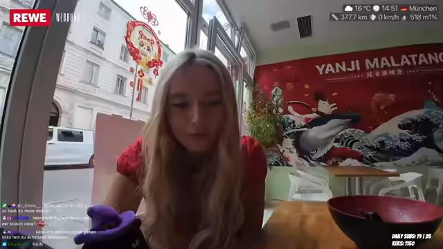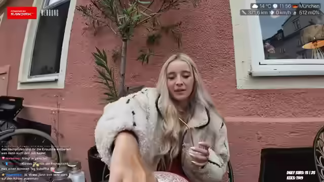 00:42:39Die Streamerin fährt durch die Straßen, auf der Suche nach einem geeigneten Parkplatz. Sie erzählt von einem Vorfall auf der Wiesn, wo es Probleme gab, obwohl sie eine Erlaubnis zum Streamen hatte. Nach einigen Schwierigkeiten gelingt es ihr, in eine kleine Parklücke einzuparken, nur um dann festzustellen, dass es sich um eine Ausfahrt handelt. Frustriert muss sie den Parkplatz wieder verlassen und erneut suchen. Schließlich findet sie einen anderen Parkplatz und freut sich darüber. Sie holt ein Parkticket und plant, in einem Café zu frühstücken. Dort bestellt sie Rühreier mit Feta, einen Latte Macchiato mit Hafermilch und ein Schinkenbrötchen. Während sie auf ihr Frühstück wartet, betrachtet sie die Umgebung und freut sich über die rosa Blümchen auf dem Tisch. Sie ist dankbar für die Möglichkeit, solche Tage mit ihren Zuschauern zu verbringen, auch wenn sie nicht gut drauf ist.