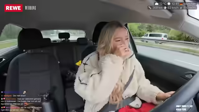 00:25:58Die Streamerin betont, wie stolz sie auf sich ist, erwachsene Entscheidungen getroffen zu haben, wie das Absagen eines Treffens mit Freundinnen, um sich nicht zu überlasten. Sie hat Getränke dabei und freut sich auf den Tag, obwohl sie etwas traurig ist. Es wird überlegt, Malatang essen zu gehen und ein Buch zu kaufen. Navigationsprobleme und die Suche nach einem Parkplatz werden thematisiert. Ein Mann hat in das Auto der Streamerin geschaut, was zu Irritationen führt. Die Streamerin spricht über ihre Schlafstörungen und den Versuch, Energie zu sparen. Technische Einstellungen für den Stream, wie Text-to-Speech und Navigation, werden vorgenommen. Die Präferenz für Samsung-Handys zum Streamen wird erklärt, obwohl ihre Freundinnen wahrscheinlich nicht nach München kommen wollen. Es folgt eine Diskussion über Gewichtsdecken und Katzenhaare in der Nase.