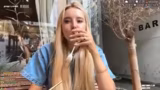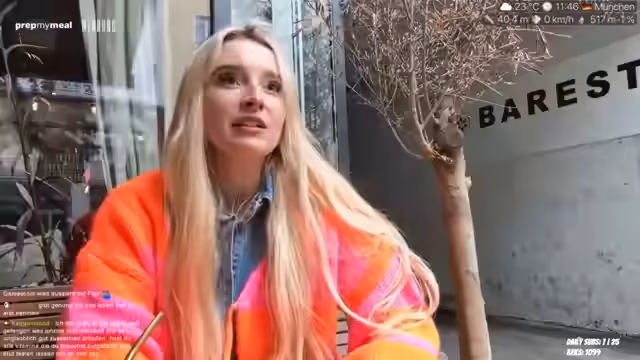 00:19:39Die Streamerin ist auf dem Weg zum Sommerfest. Sie berichtet, dass sie ein Ex-Benedict-Ei mit Trüffel-Hollandaise und einen Latte Macchiato bestellt hat. Während des Essens erzählt sie eine lustige Anekdote aus dem Flugzeug, wo sie mit einem Pärchen mit Flugangst zusammensaß und ihre Glückserdnuss mitgeteilt hat, was bei den Mitreisenden für Erleichterung sorgte.