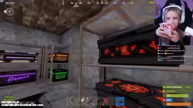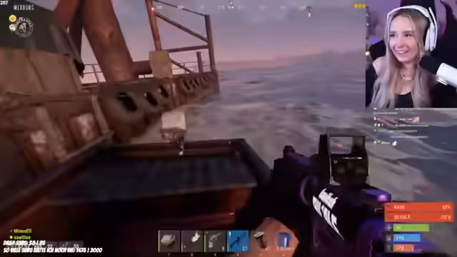 00:34:14Die Streamerin zeigt ein cooles Gadget für ihr Handy, ein Licht mit Spiegel, das magnetisch befestigt ist. Sie erklärt, dass sie immer die Rückkamera benutzen möchte, weil die bessere Qualität hat. Es wird überlegt, ob es der letzte Tag von Rust Rivals ist, da Tramix aufgegeben hat, weil seine Farm zerstört wurde. Die Streamerin guckt, wie viele live sind und stellt fest, dass es Mittwoch ist. Sie erklärt, dass sie keine minus 11% machen können, weil das unfairer Wettbewerb wäre. Sie möchte die Kisten aussortieren und die Map ablaufen, um die Orte zu markieren, wo die anderen wohnen und währenddessen looten. Sie hat eine blaue Schlüsselkarte gefunden. Die Streamerin hätte gerne mehr Deko und vermisst die Morgenmusik. Sie hat einen großen, geilen Rucksack gefunden und ihr Musikgerät dabei. Sie geht kurz zum Hafen und guckt, ob sie da unten etwas aufmachen kann. Ihr größter Erzfeind im Spiel sind Wildschweine. Sie hat nichts zum Looten dabei und erschreckt sich vor einem Jumpscare. Sie nimmt zu wenig Kraftstoff mit und der zweite Aufsatz auf der Waffe ist ein Magazin. Sie muss auch zu Wissenschaftlern gehen, weil die oft eine Spitzhacke zum Looten dabei haben. Es wird erwähnt, dass Annika auch erst um 9 Uhr angefangen hat, weil sie nicht aus dem Bett kam. Die Streamerin will zum Hafen gehen, weil Chad gesagt hat, dass heute der letzte Tag sein wird von Rust. Sie hofft, dass es das nicht war und dass es noch Fights gibt.