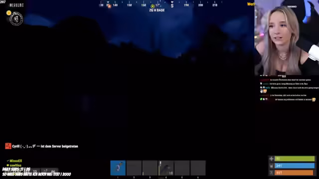 12:45:47Die Gruppe fliegt mit Minis und stellt fest, dass andere Spieler auch Minis haben. Es wird überlegt, ob man die Small machen soll und es wird ein Jasmin-Team gebildet. Die Gruppe stellt fest, dass es auf Small immer so abgeht. Die Gruppe stellt fest, dass alle komplett tot sind. Es wird überlegt, ob man einen AK spenden soll. Die Gruppe nimmt Schrotflintenmonie auf und stellt fest, dass es fast nichts hier gab. Die Gruppe wartet auf den richtigen Loot und stellt fest, dass die anderen noch dazu kommen. Die Gruppe überlegt, ob sie jemanden auslöschen soll und distanziert sich davon. Die Gruppe hat den ersten Raid auf diesem Server defended. Die Gruppe stellt fest, dass die Base für 10 Stunden drin ist und dass mehr Stein benötigt wird. Die Gruppe stellt fest, dass es chaotischer wird, je mehr Leute drin sind. Die Gruppe stellt fest, dass der TC gebrochen wurde und ein Statchel geklaut wurde. Die Gruppe stellt fest, dass morgen mehr Bomben kommen. Die Gruppe macht die letzte Tür weg, damit freier Zugang wieder ist. Die Gruppe geht schlafen und verabschiedet sich. Die Gruppe stellt fest, dass sie Lowgrade Fuel reinmachen muss. Die Gruppe bedankt sich für den tollen Stream und verabschiedet sich.