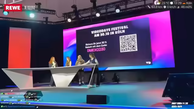 03:20:37Die Vorfreude auf die Video-Days und die Creator-Bühne wird zum Ausdruck gebracht, wobei die frühere Rolle als Zuschauer nun in eine aktive Teilnahme übergeht. Es wird überlegt, ob der Panel Talk gestreamt wird und wo der Backstage-Bereich ist, um sich mit Alina zu treffen. Die Vorbereitung auf den Panel Talk umfasst auch die Klärung akustischer Fragen, da es in der Vergangenheit auf Bühnen der Gamescom Verständigungsprobleme gab. Es wird überlegt, ob ein Mikrofon benötigt wird und wie die Akustik verbessert werden kann, um die Verständlichkeit zu gewährleisten. Die Frage nach einem Bonbon für die Bühne wird aufgeworfen, aber Kaugummi wird als ungeeignet erachtet. Es wird die Möglichkeit eines Placement angesprochen, falls ein Getränk mitgenommen wird. Die Entscheidung, den Stream an Stefan weiterzugeben, wird getroffen, um entspannt über die Messe gehen zu können. Es gab wohl in der Vergangenheit Probleme mit einem Nutzer im Chat gab, der den Namen einer Person missbräuchlich verwendete, was zu einer Blacklistung führte.