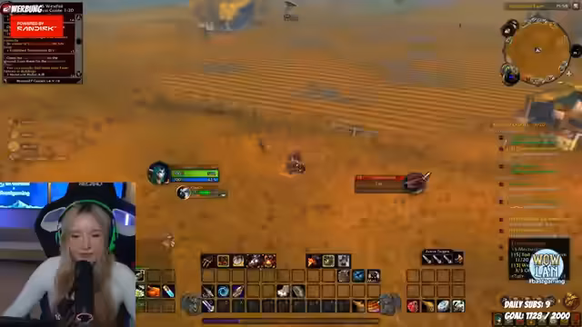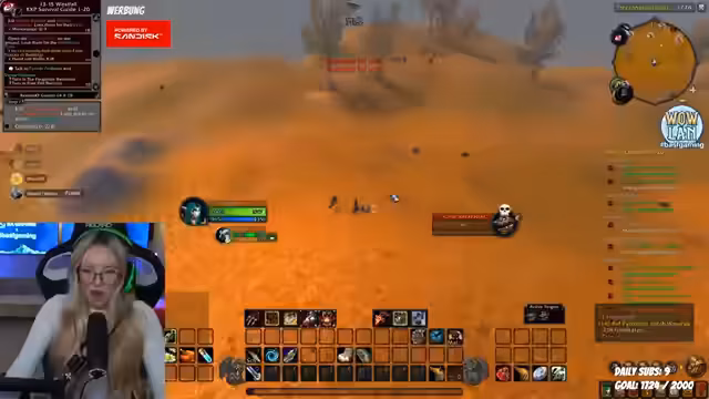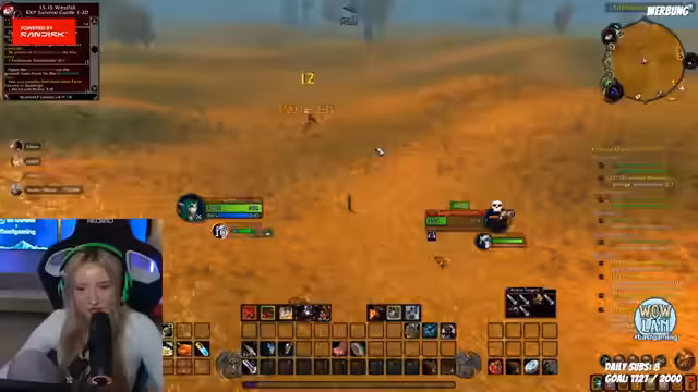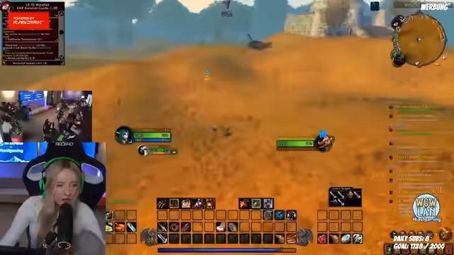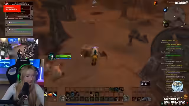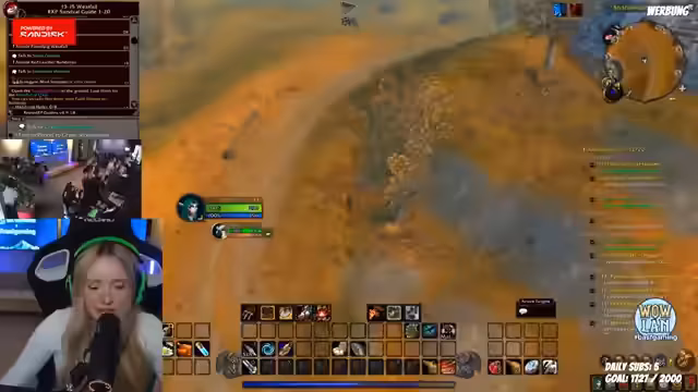 05:33:16Der Streamer konzentriert sich wieder auf das World of Warcraft-Spiel. Er zeigt den Chat sein Haustier, das alleine Level 15-Mobs besiegt, während er selbst Level 14 ist. Gemeinsam mit einem Mitspieler (Olaf) versucht er, eine Quest zu absolvieren, stößt aber auf Schwierigkeiten. Sie planen, die 'Aschenbucht' durchzulaufen und überlegen, welche Quests sie als Nächstes annehmen sollen, wobei sie auf Probleme mit bestimmten Quest-NPCs stoßen.